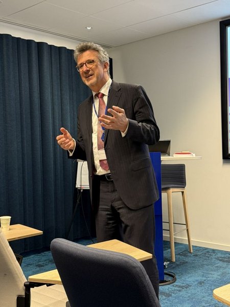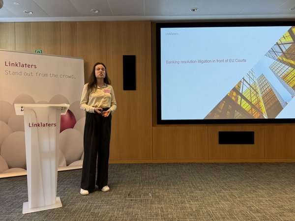 The trip began with a visit to the Brussels office of Linklaters, where students met Prof. Dr. Bernd Meyring, Global Head of Antitrust and Foreign Investment, who gave an overview of the legal work carried out by Linklaters and the main focus areas of the Brussels Linklaters office. This session offered valuable perspectives on international legal practice, competition law, and cross-border regulatory challenges. The visit continued with an informative session by Ms. Dzhuliia Lypalo, Associate at the Brussels office, who discussed banking resolution litigation before EU courts, followed by a Q&A session.
